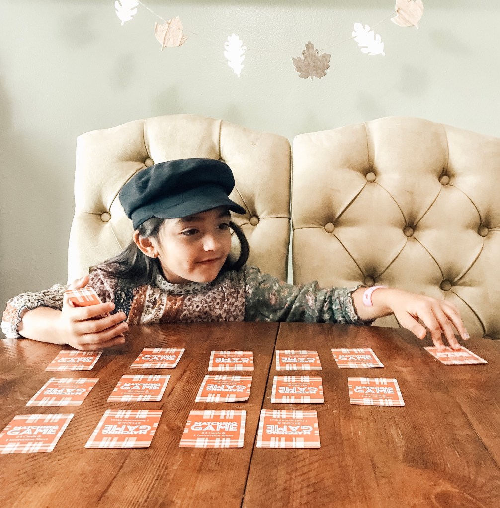 I always start our memory card games off with a few matching cards and then add more every round. This way the kids don’t get discouraged and alway stay engaged.