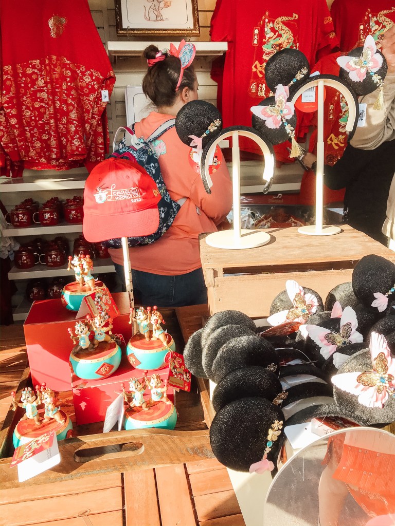 There are always great merch picks during this festival. You will find shirts, Minnie ear headbands, pins, toys and even red envelops to celebrate in true Lunar New Year style. They also have these great red festive balloons for purchase (cash only). If you’ve never purchase a Disney parks balloon, they will last for weeks on end. And if your balloon pops while in the park that day, just take your balloon to a balloon merchant for an exchange for free!