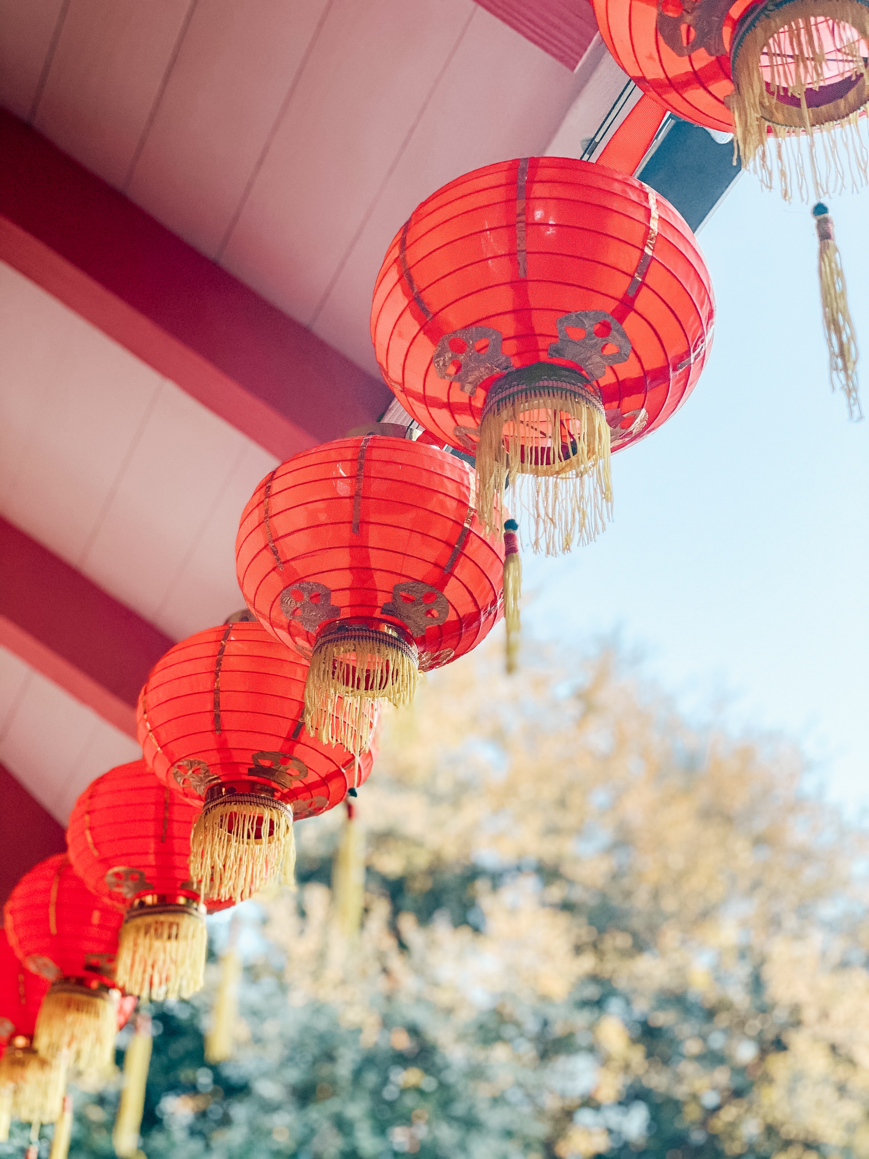 The decorations and colors of the festival are gorgeous. Make sure to take a step back and just look around. There are plenty of spots to gather with your family to capture a beautiful photo, or take a selfie for the gram. You will find the Paradise Gardens pavilion decked out with bamboo, golden flowers, peach blossoms, ornamental lanterns and banners.