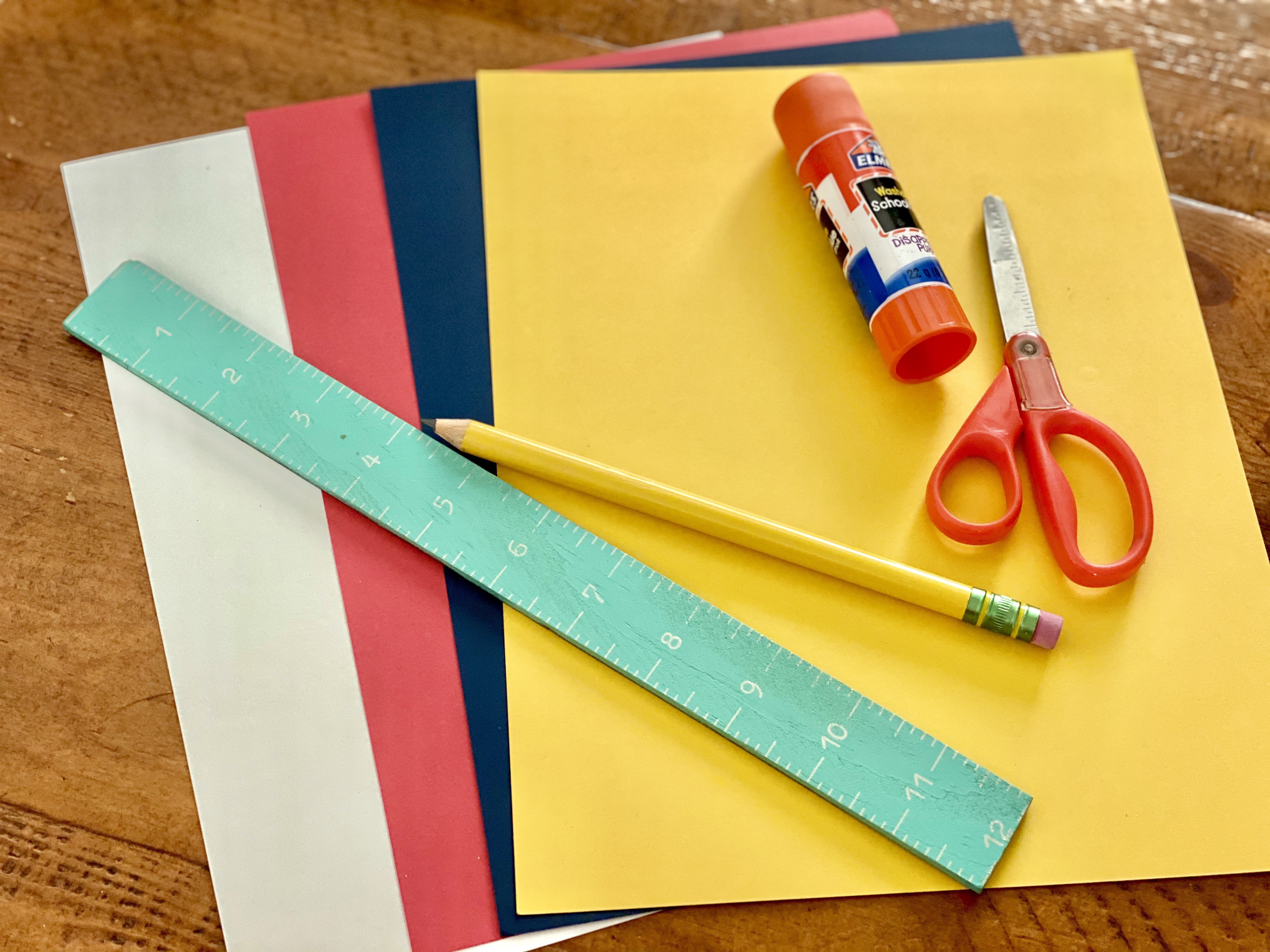 - Card stock papers (white, red, blue, yellow)
