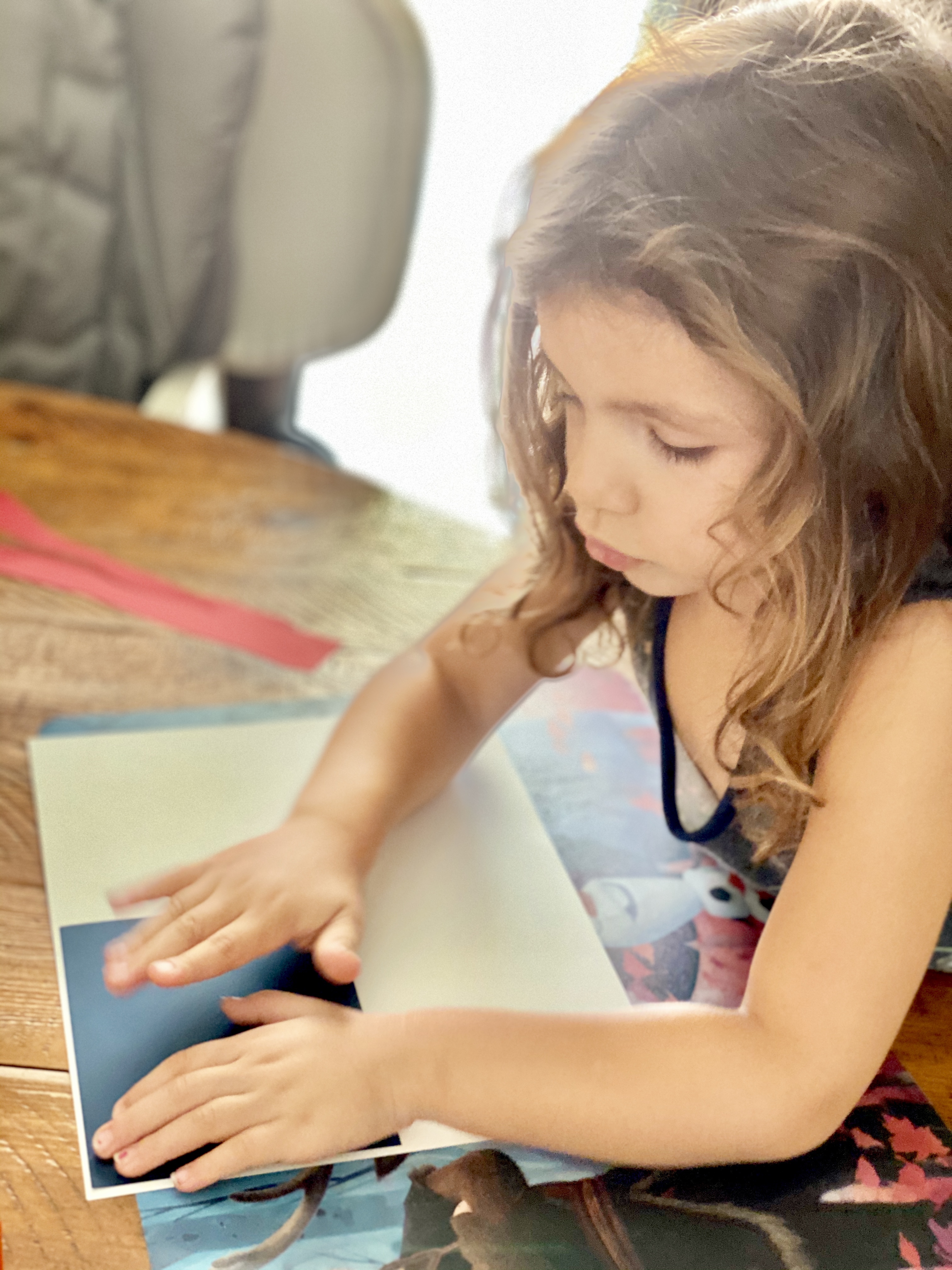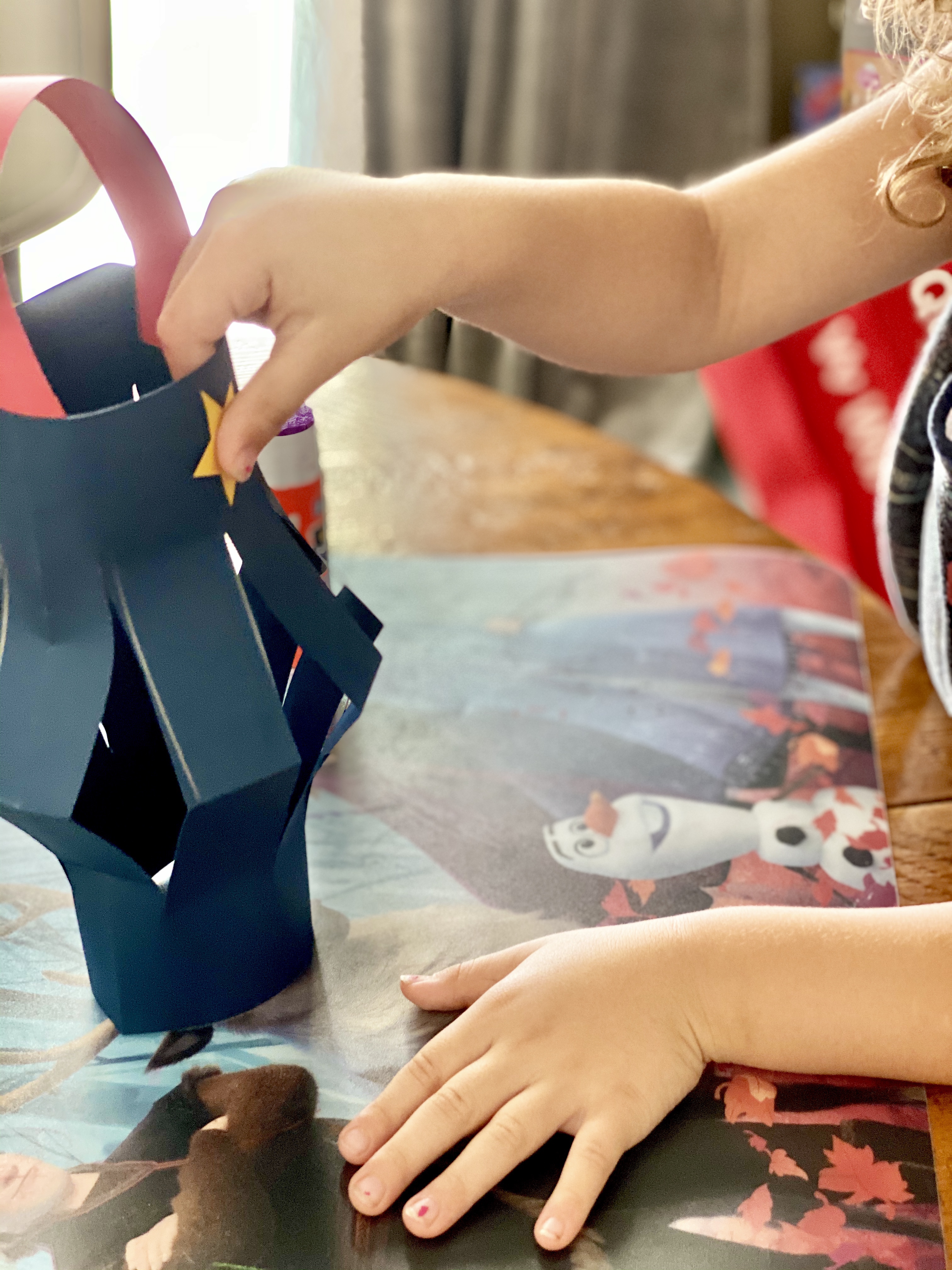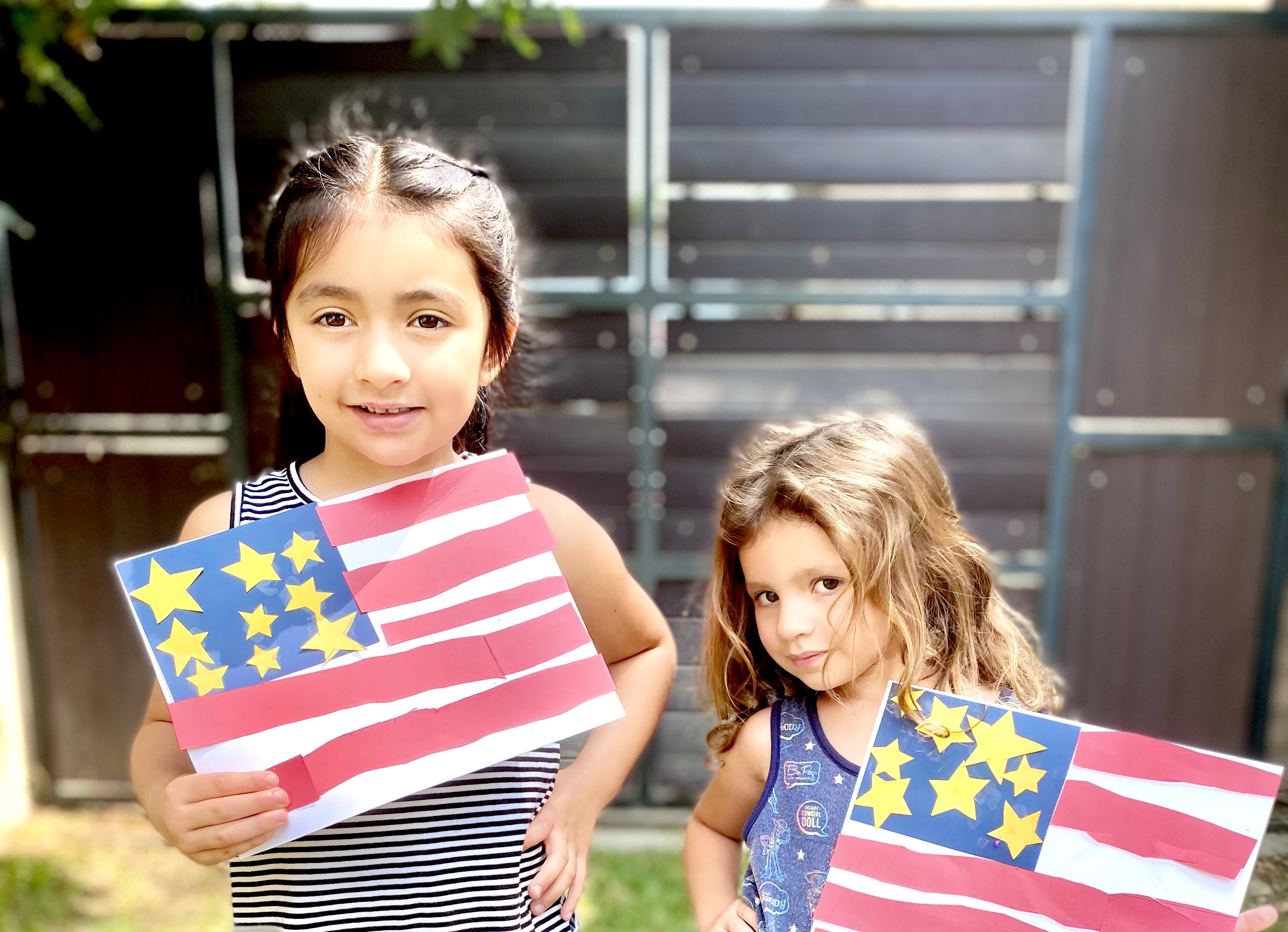 Since I am dealing with a 5 and 3-year-old, it always helps to involve a craft of some kind to hold their attention. With some craft paper already on hand, I decided we would make our own American flags and patriotic paper lanterns. This is a easy craft that also helps with developing fine motor skills by practicing those cutting skills.