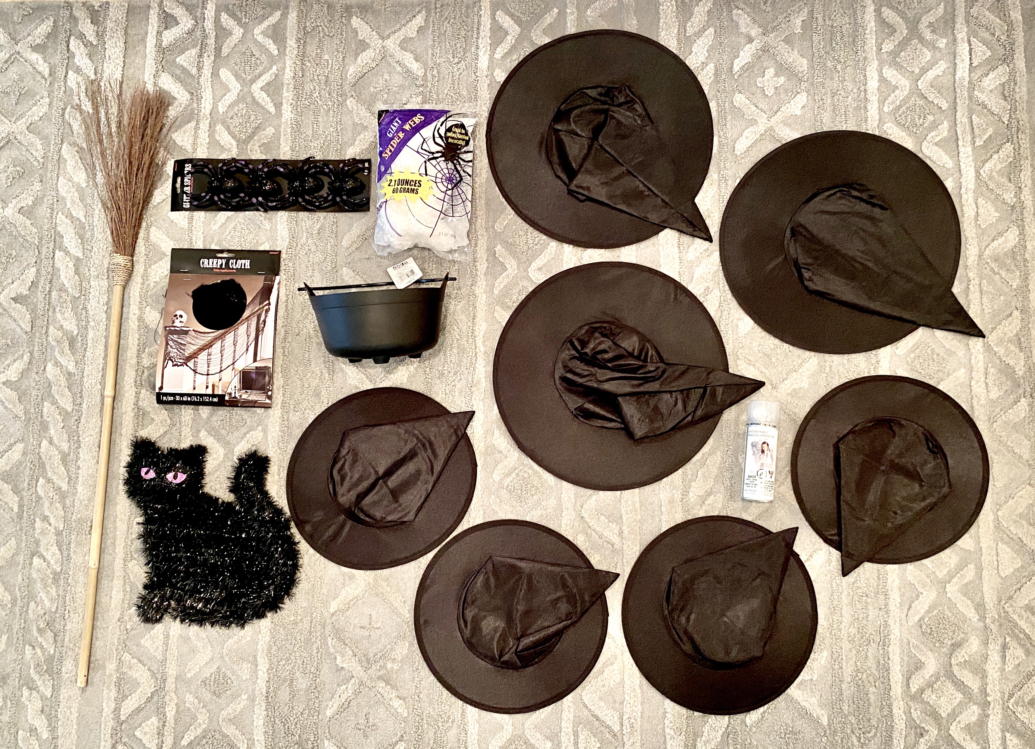 • 7 witch hats (3 classic sized, 4 child sized)