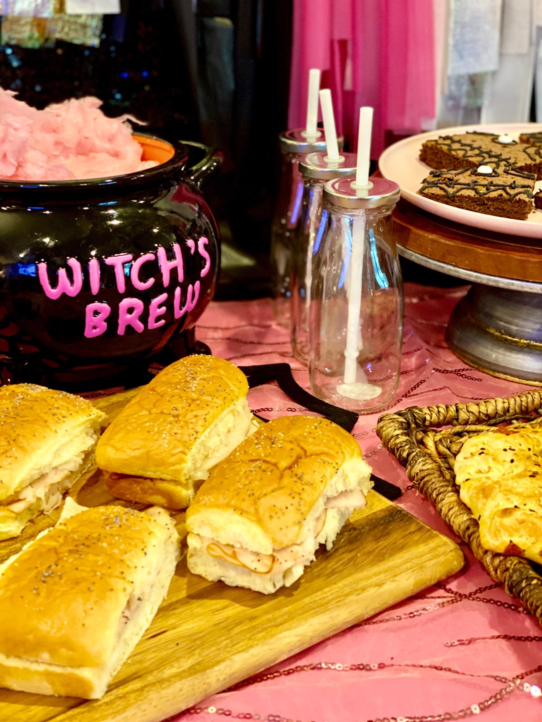I love making turkey sliders. It’s one of my favorite crowd pleasing finger foods. Why? Because they are easy, fast and delicious! You can make these for a lunch snack or a for a crowd. I made these for our Hocus Pocus movie night (pictured above). Here is what you need: